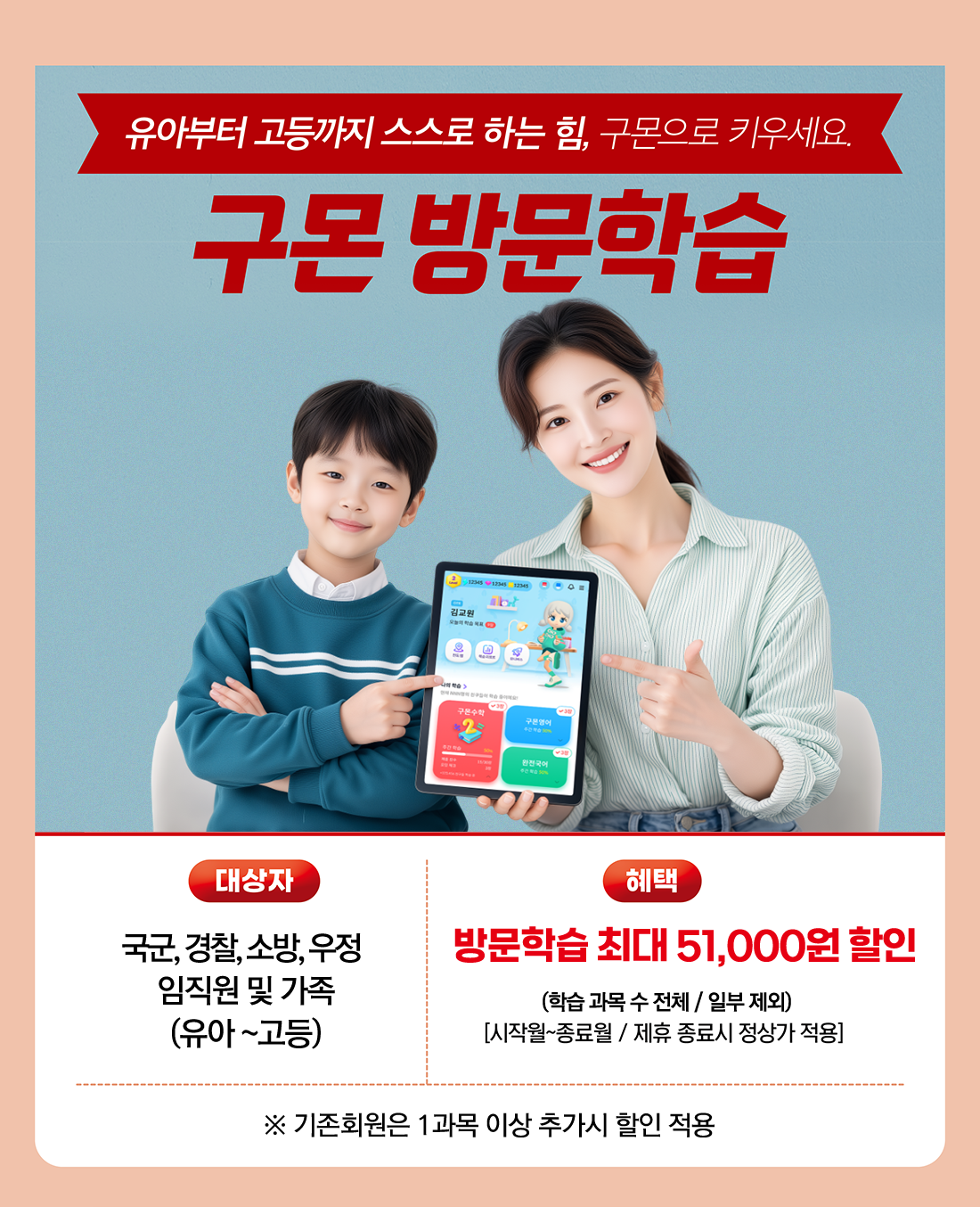 구몬학습 회원만을 위한 다양한 혜택을 누리세요.