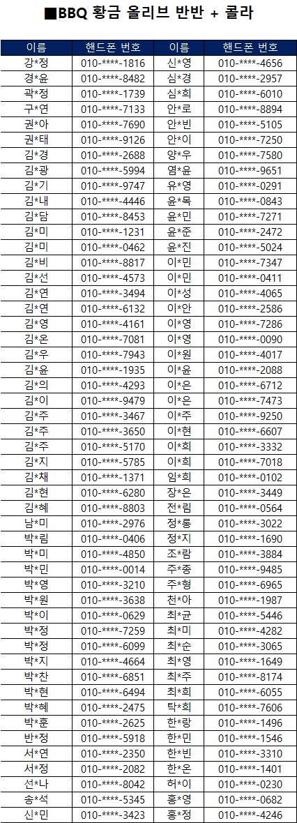 bbq, 배스킨라빈스 경품 당첨자는 7월 20일 상담신청 시 작성한 휴대번호로 기프티콘이 전송됩니다.
