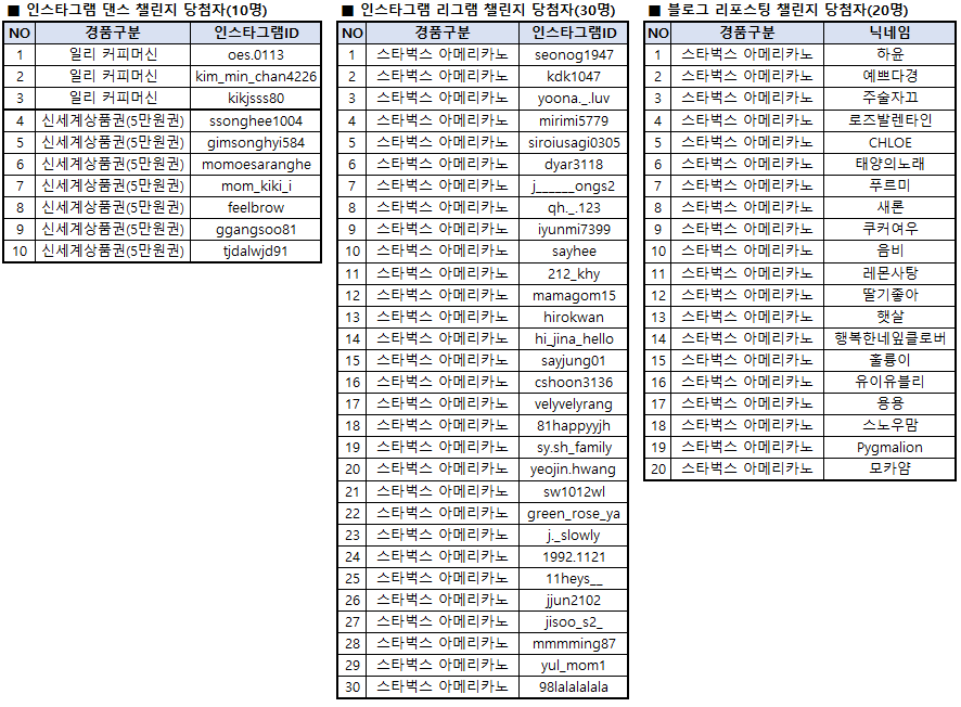※ 일리 커피 머신 당첨자분들께는 제세공과금 처리(자사 부담)를 위해
