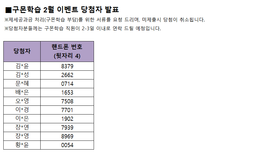 모든 분들께 감사 드리며, 추첨 이벤트 당첨자를 발표합니다.