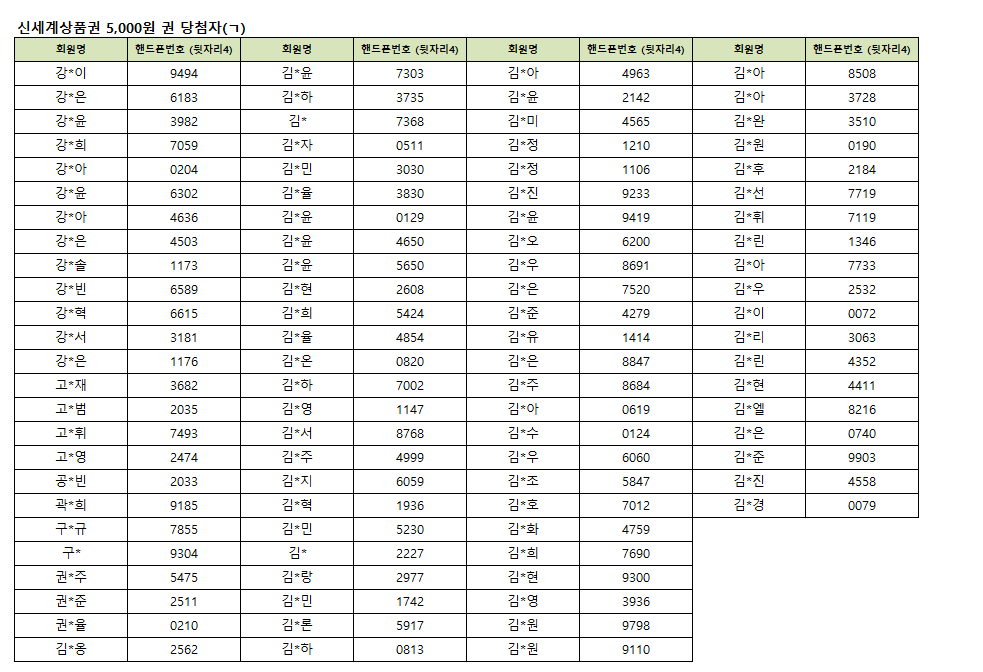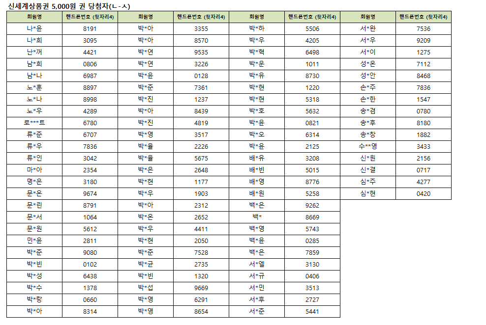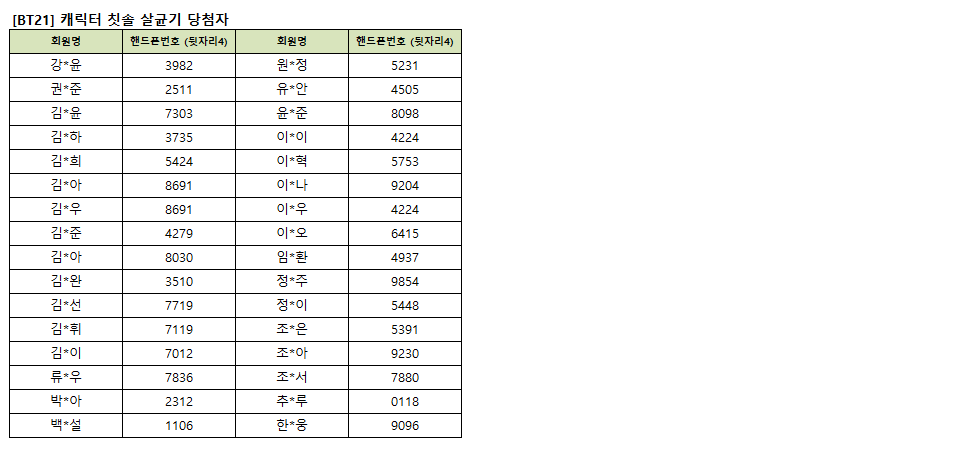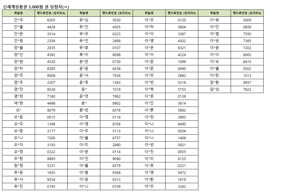 모든 분들께 감사 드리며, 이벤트 당첨자를 발표합니다.