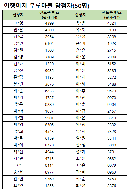 모든 분들께 감사 드리며, 이벤트 당첨자를 발표합니다.