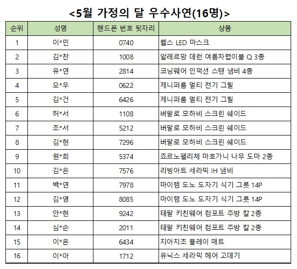 ※ 우수 사연으로 선정된 16분께는 개별로 연락 및 배송해 드릴 예정이며,