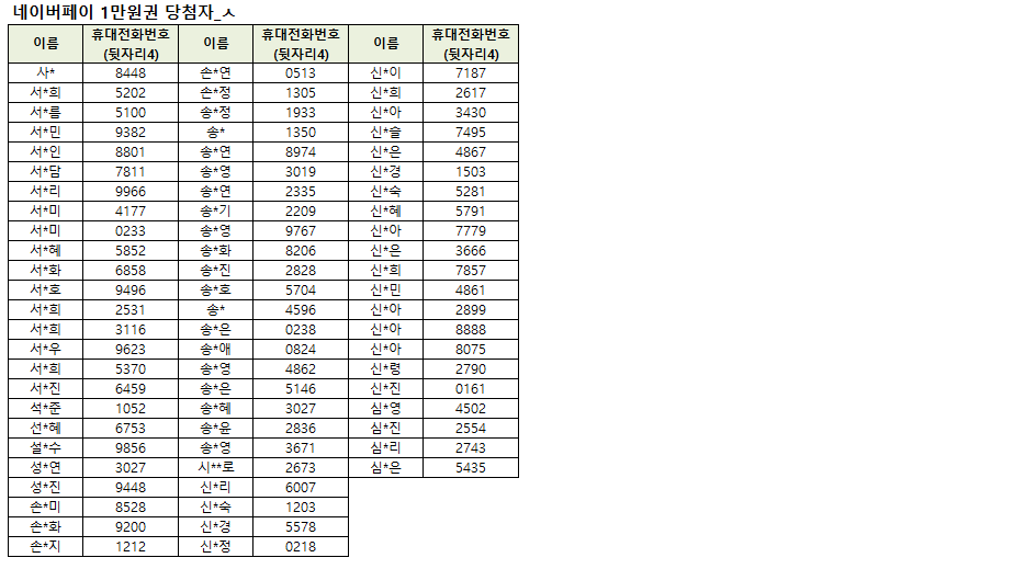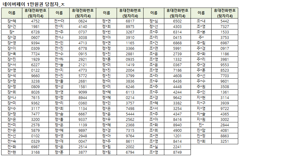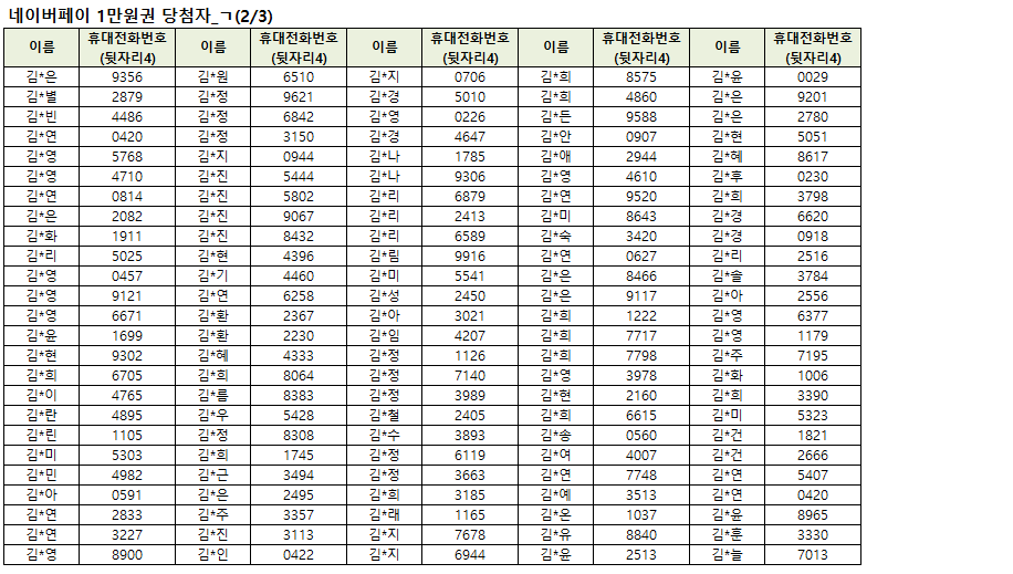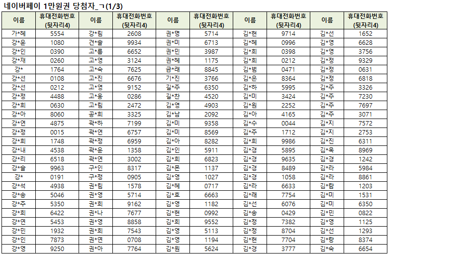 모든 분들께 감사 드리며, 이벤트 당첨자를 발표합니다.