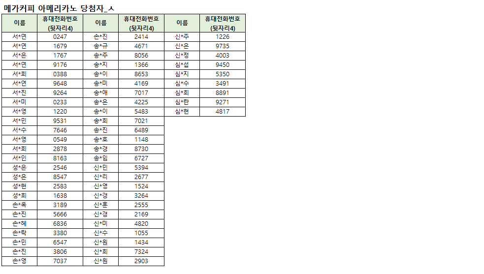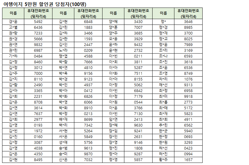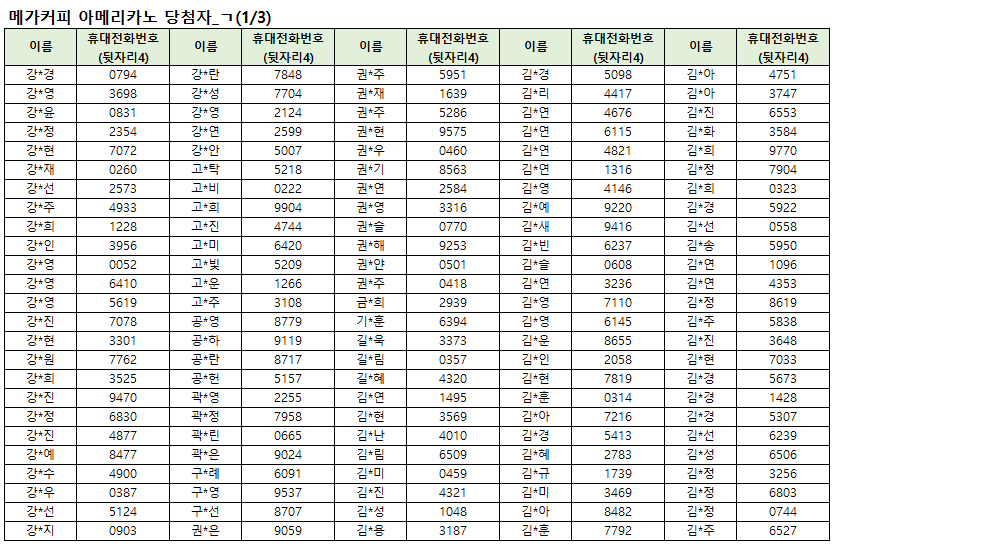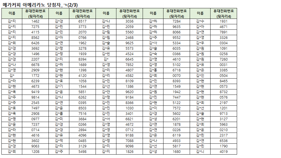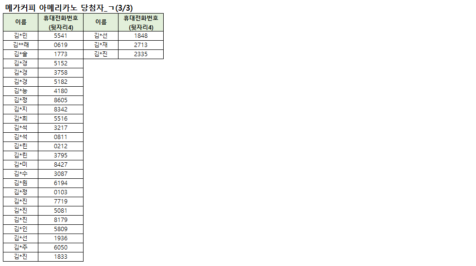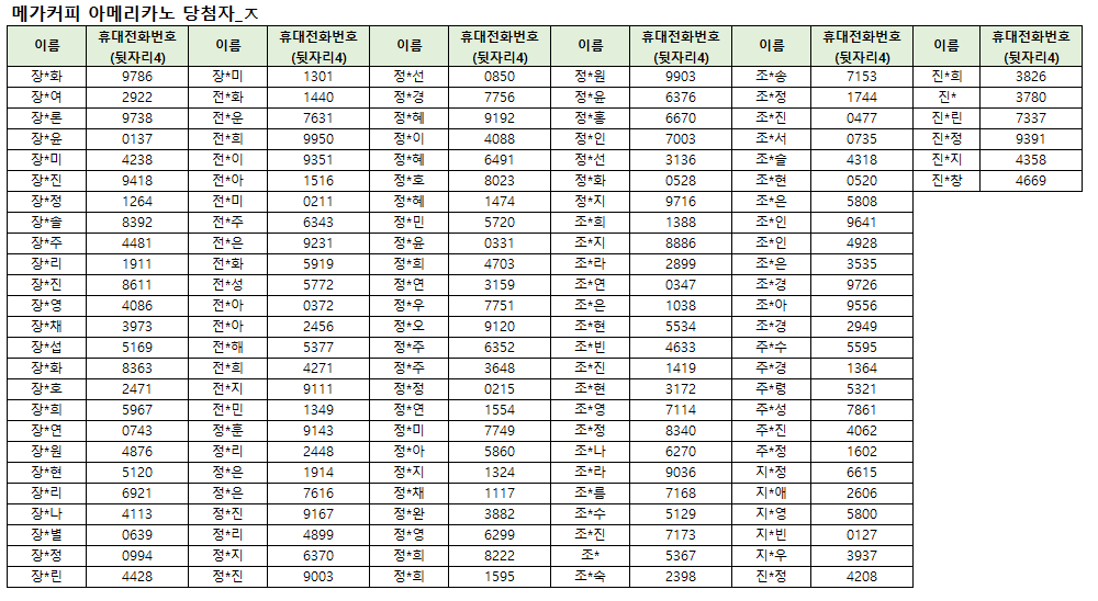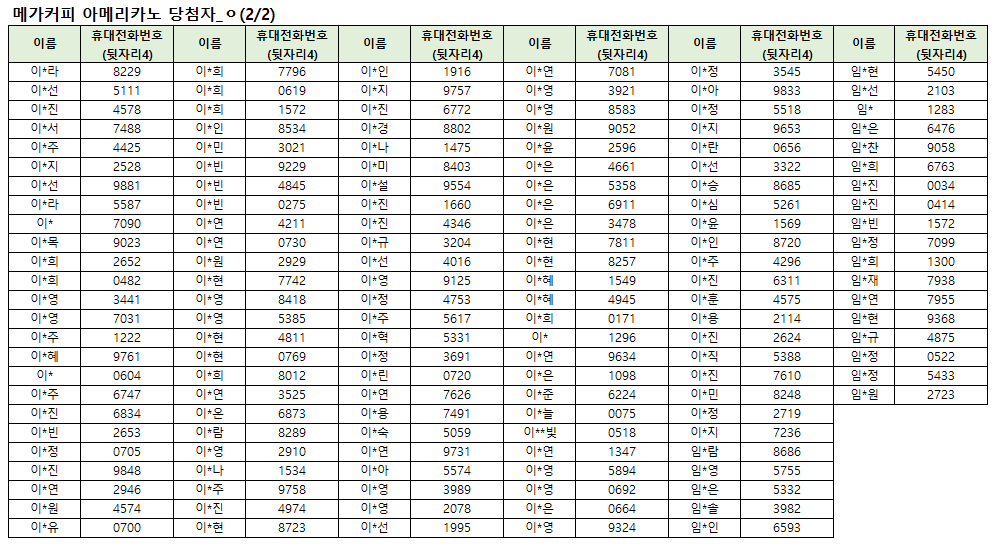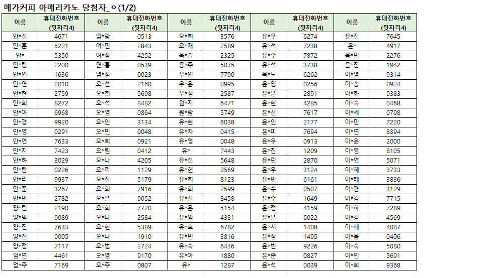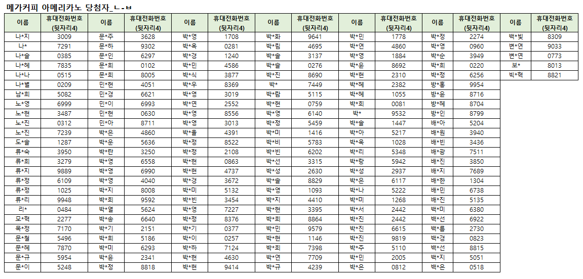 모든 분들께 감사 드리며, 이벤트 당첨자를 발표합니다.