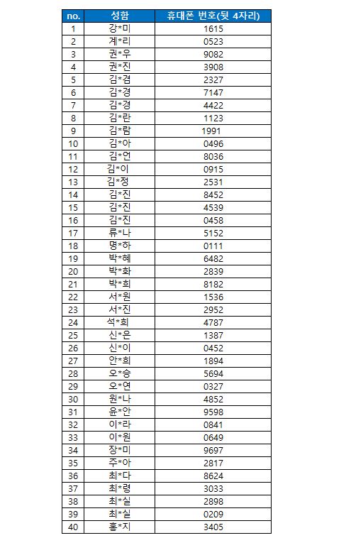 선발되신 분들께는 추후 진행사항에 대해 문자로 안내해드릴 예정입니다.