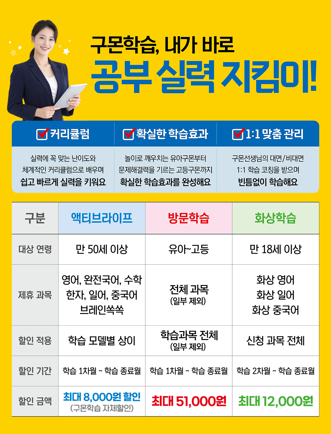 현재 진행중인 구몬의 이벤트를 확인하세요.