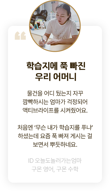 ※ 구몬 액티브라이프는 50세 이상 고객들이 학습할 수 있는 프로그램입니다.